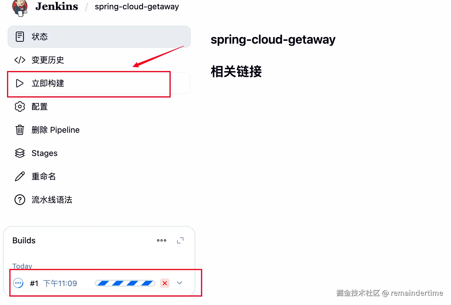 创建成功点击立即构建