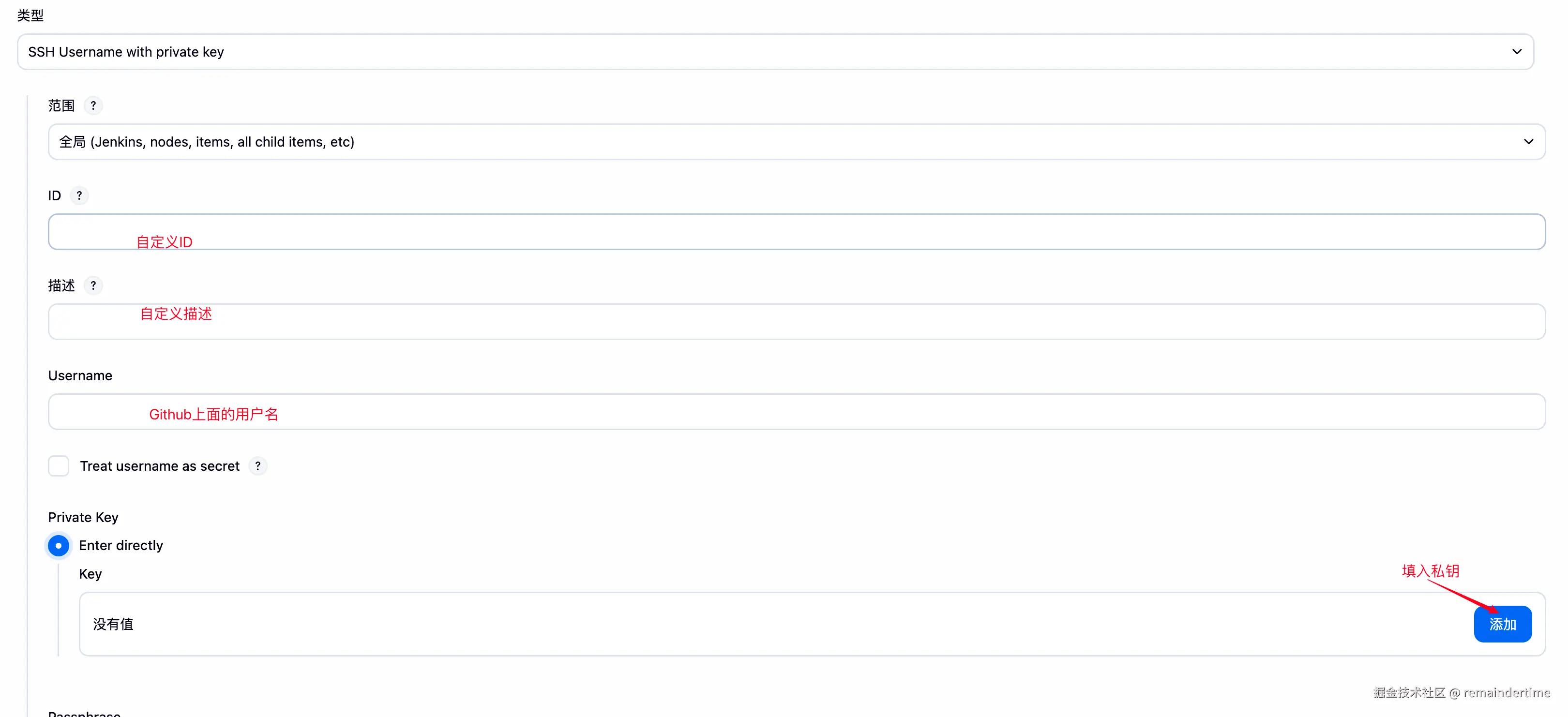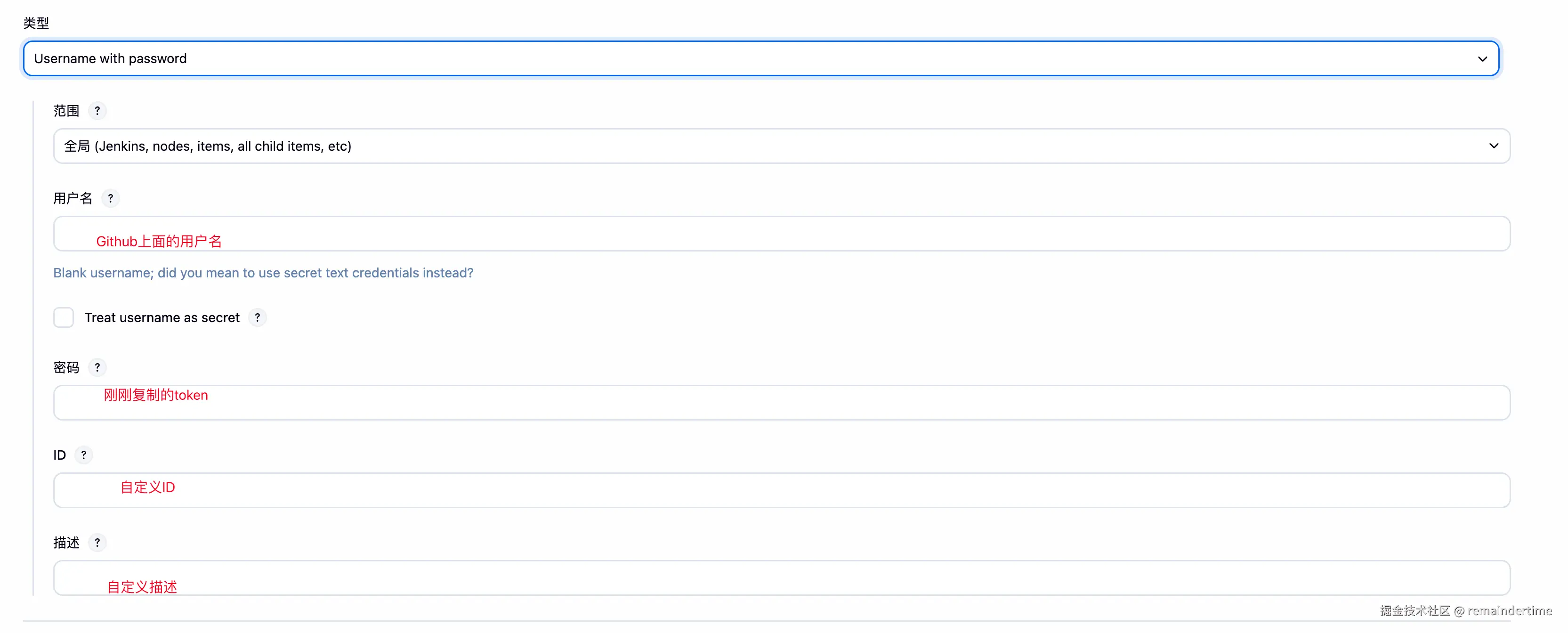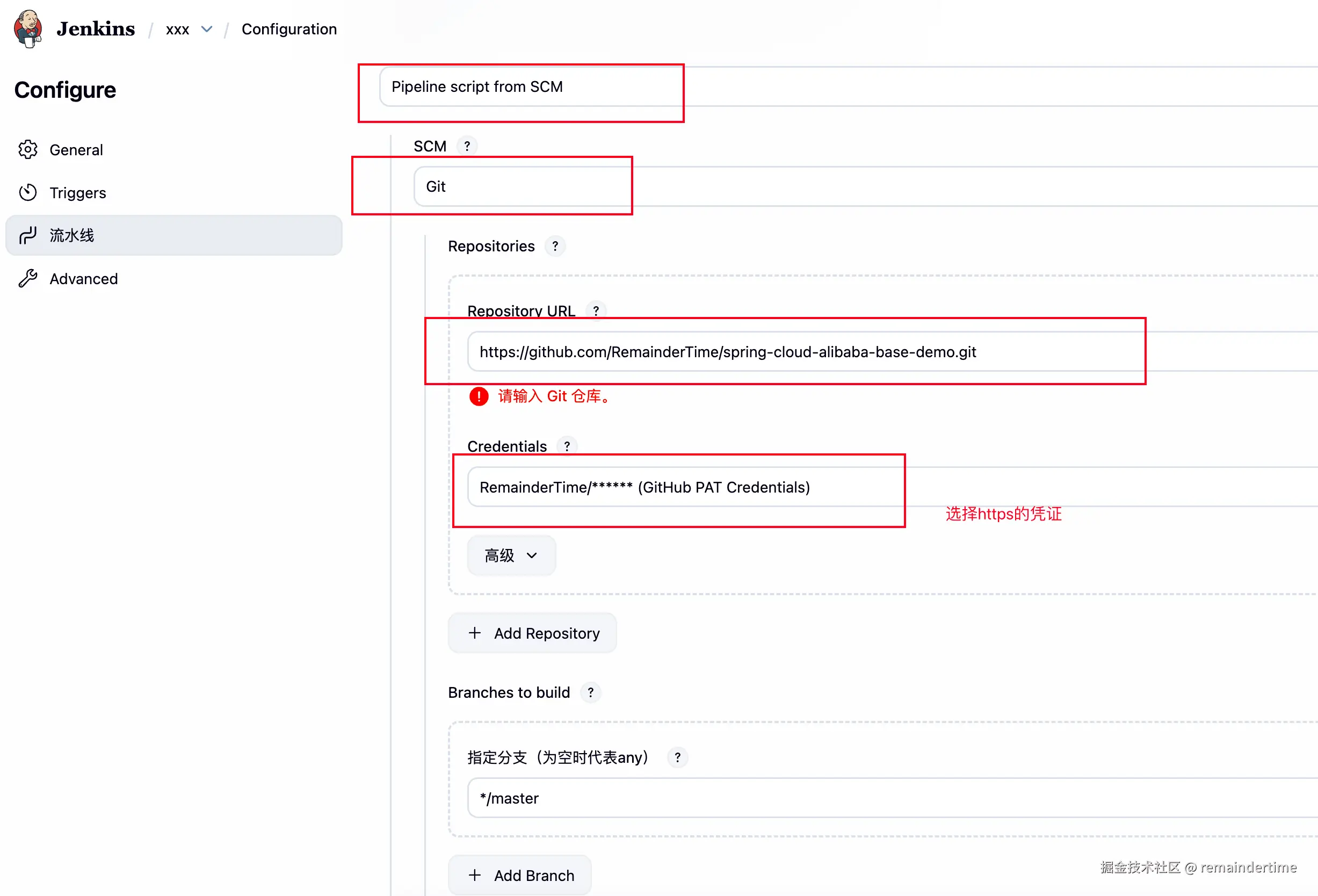 如果选择这种方式,记得将 Jenkinsfile 中 的环境变量 GITHUB_REPO、GITHUB_CREDENTIALS_ID 替换成 Https 相关配置