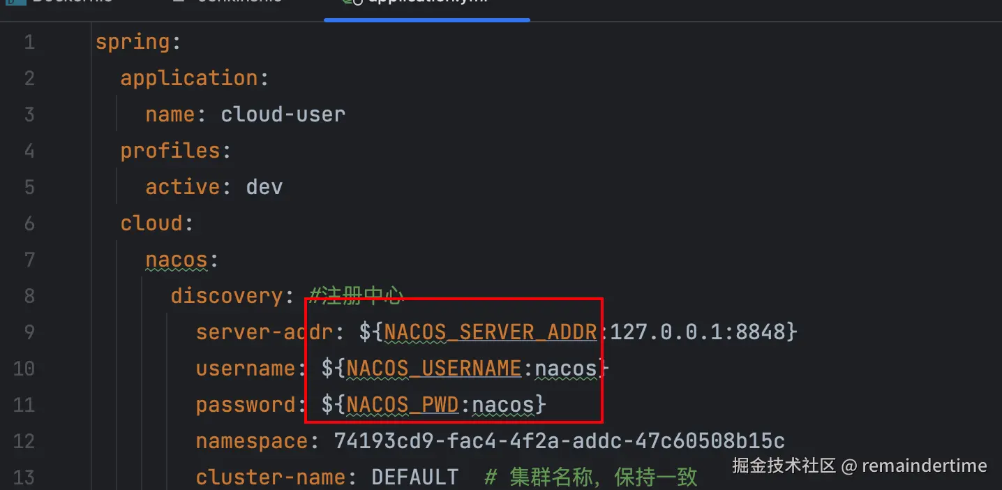 这部分中的 NACOS 开头的环境变量为 项目中 yml 中定义的 nacos 环境变量配置,如果没有可以把 NACOS 相关的 去掉