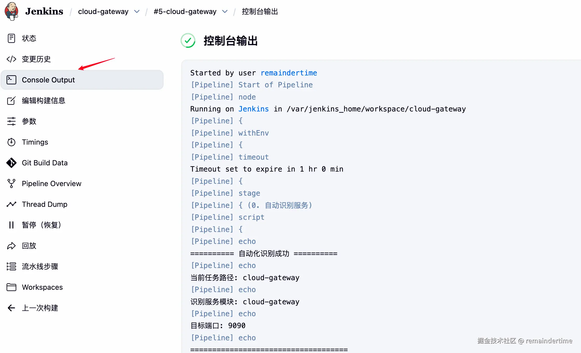 左下有构建的记录,直接点击可查看本次构建的相关信息