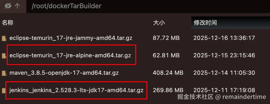 docker pull eclipse-temurin:17-jre-alpine docker pull jenkins/jenkin:2.528.3-lts-jdk17方式二:对于国内服务器可能无法直接拉取,这里博主提供镜像包,选择对应镜像包下载即可: