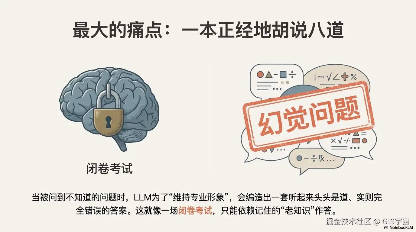 更棘手的是,当被问到它不知道的问题时,为了 “维持专业形象”,它会基于训练数据的逻辑,编造出一套听起来头头是道、实则完全错误的答案 —— 这就是大模型令人头疼的 “幻觉问题”。