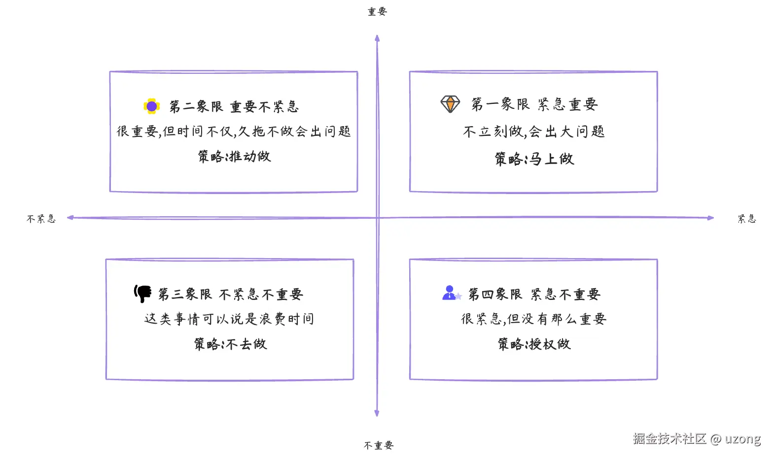 我们常陷入“第一象限”(重要且紧急)和“第四象限”(不重要但紧急)的泥潭,业余时间又滑入“第三象限”(不重要不紧急)的娱乐消遣。结果,“第二象限”——重要但不紧急的事——被无限推迟。