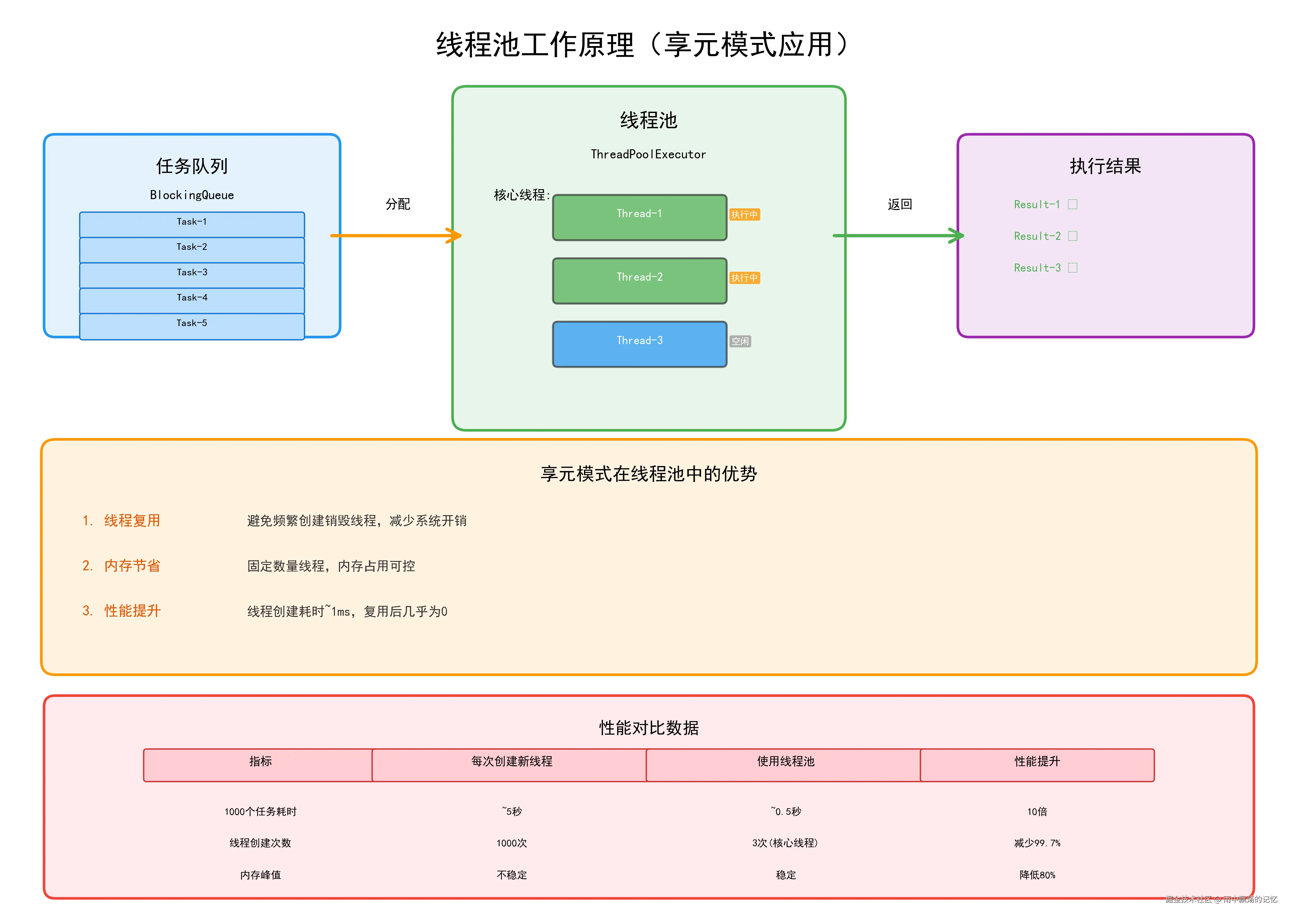 Java的线程池也是享元模式的典型应用,通过复用线程避免频繁创建销毁的开销。