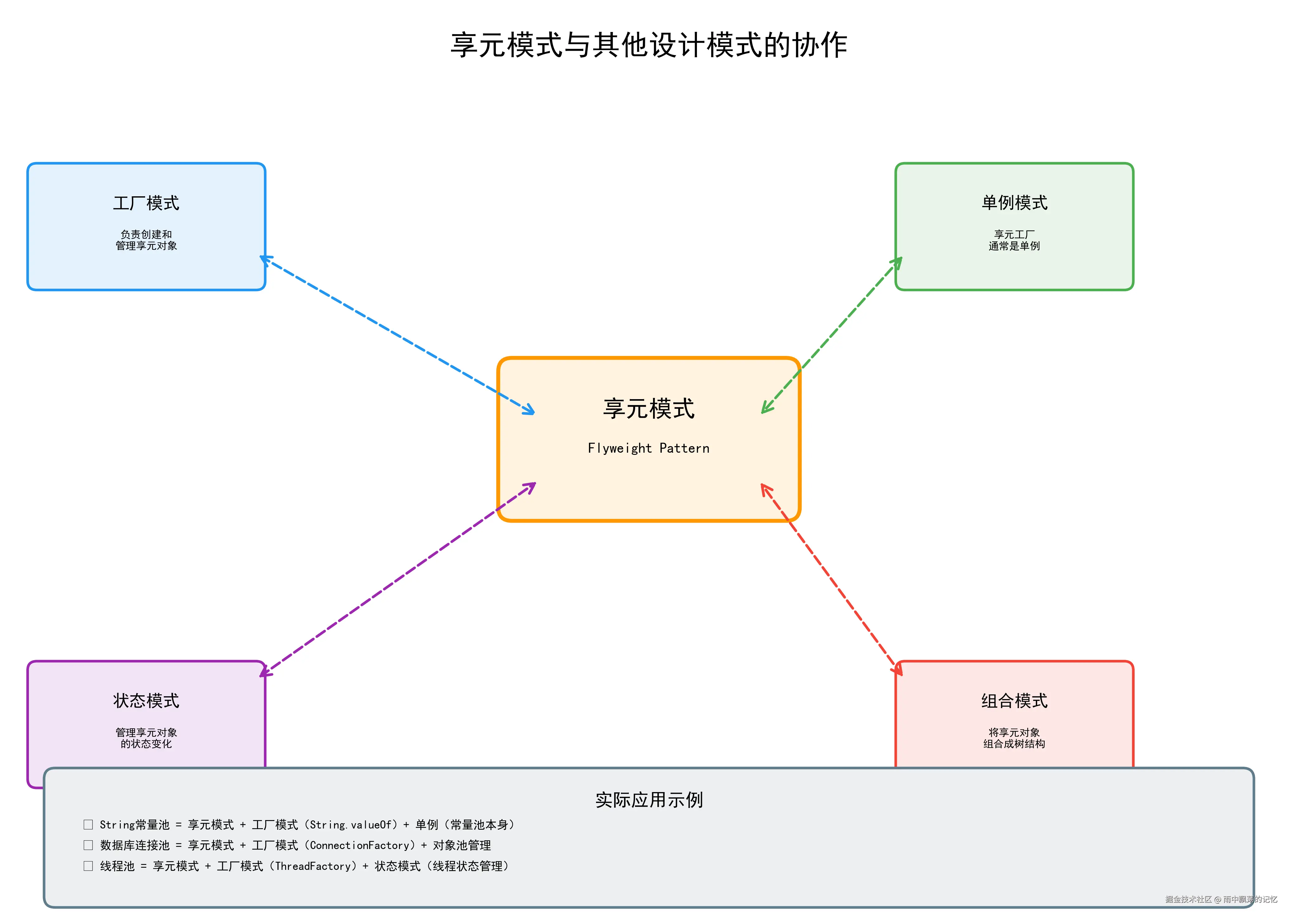享元模式是一个强大的性能优化工具,通过对象共享实现内存和性能的双重优化。在实际开发中,我们已经在使用它: