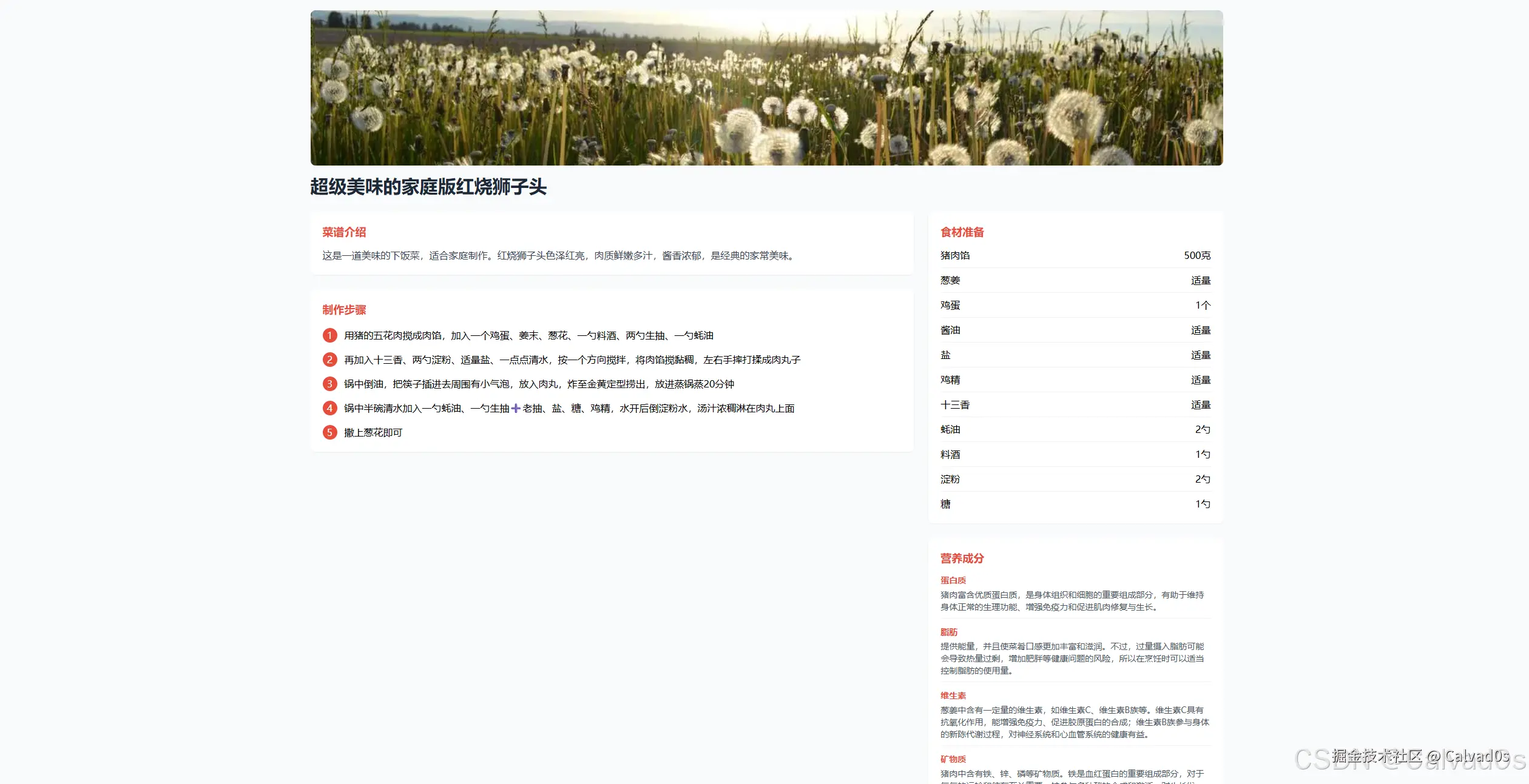 2.格式如下,根据传入的数据{{input}}中菜谱名称,描述,食材,营养成分和烹饪步骤,进行动态替换