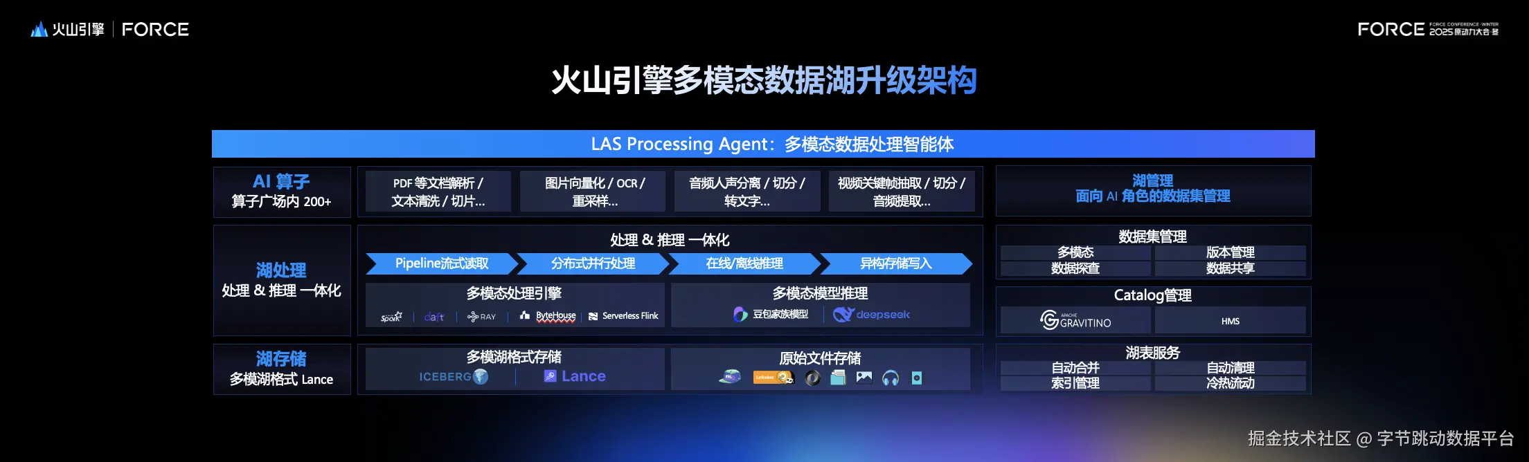 12月18日,2025火山引擎Force原动力大会·冬在上海举办,在当天下午的Data +AI论坛上,火山引擎数智平台提出企业数智化从“数据驱动”迈向“认知驱动”新阶段,并推出了通过多模态数据湖、数据智能体服务和高质量数据集在内的打造“企业认知引擎”的「Data +AI」方案服务。