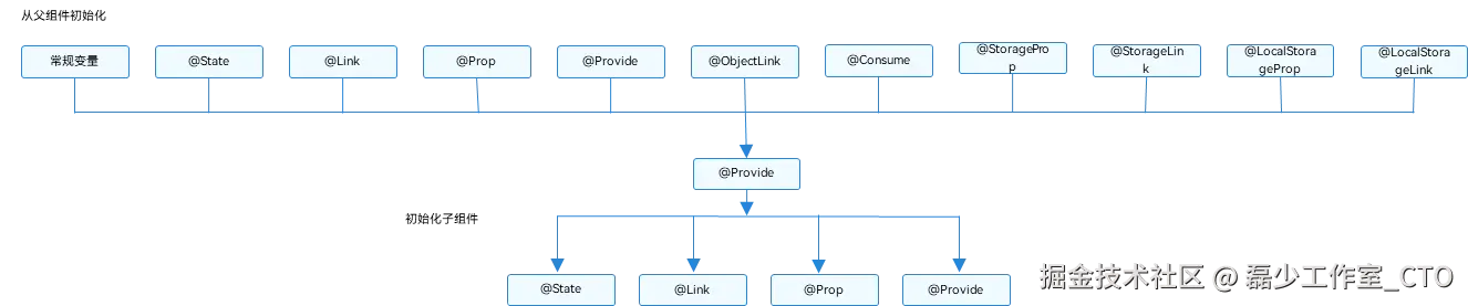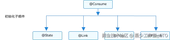 @Consume会特殊一些,它是禁止父组件传递变量给@Consume装饰的变量,因此它只有传递给子组件的权力。