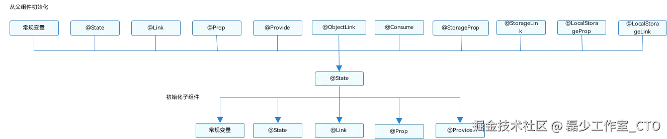 @State状态变量是不会根据父组件或子组件传递变量的改变而改变,所以他是组件内状态,接下来看下他是如何与其他装饰器联动的。
