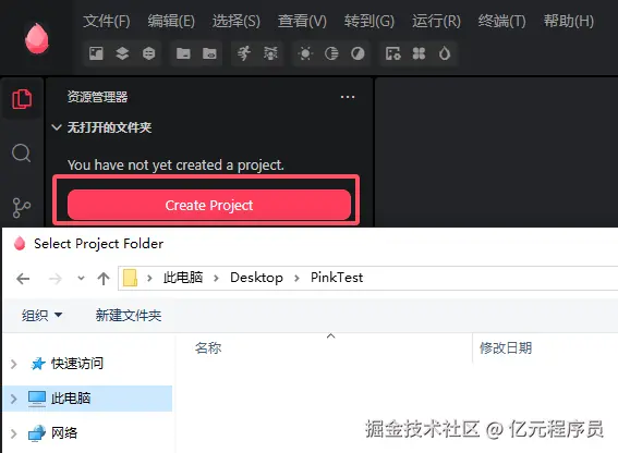 首先通过Create Project按钮创建我们的工程PinkTest。
