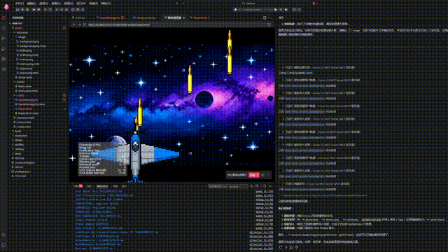 - 全程零代码、零编辑场景,全自动生成游戏(有引擎的),虽然游戏简单,后面会尝试生成更复杂的游戏,欢迎关注。