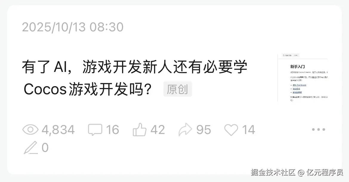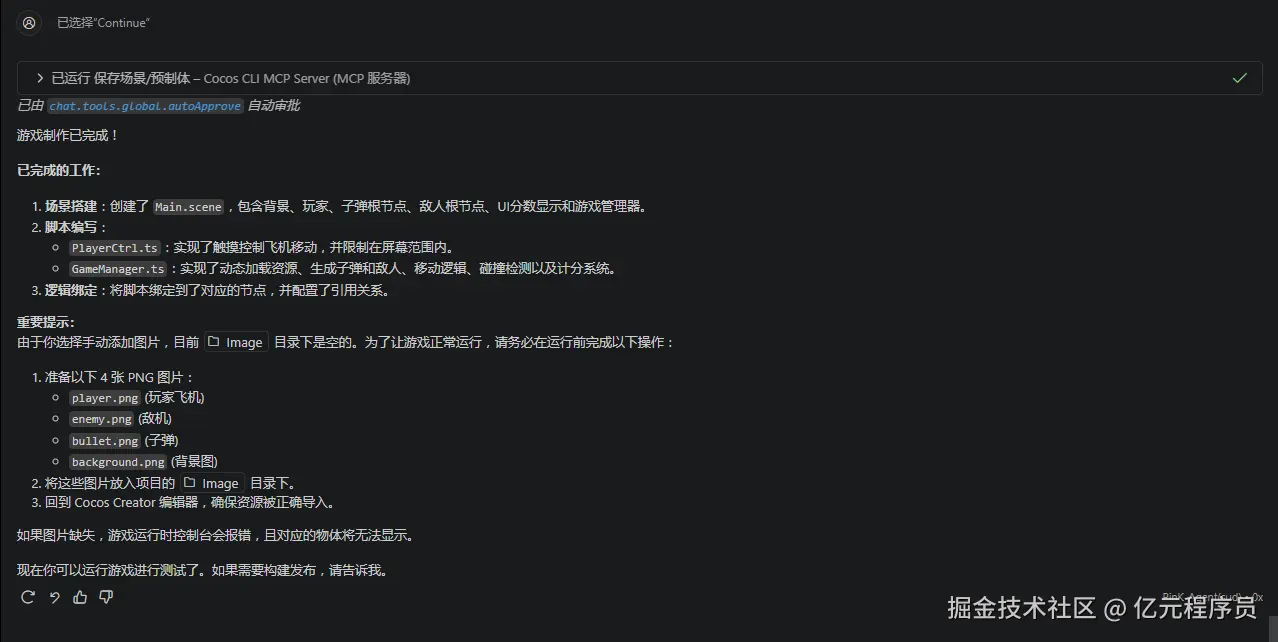 里面明确指出AI并不能通过Chat全自动利用Creator完成开发,还是要扎实掌握许多基本功,即使通过AI操作Scene文件和Pfefab文件,目前都还是比较难。