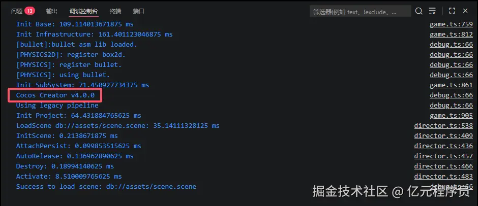 在控制台可以清晰看到Cocos Creator v4.0.0字样,这是不是就说明PinK就是Cocos4.0?