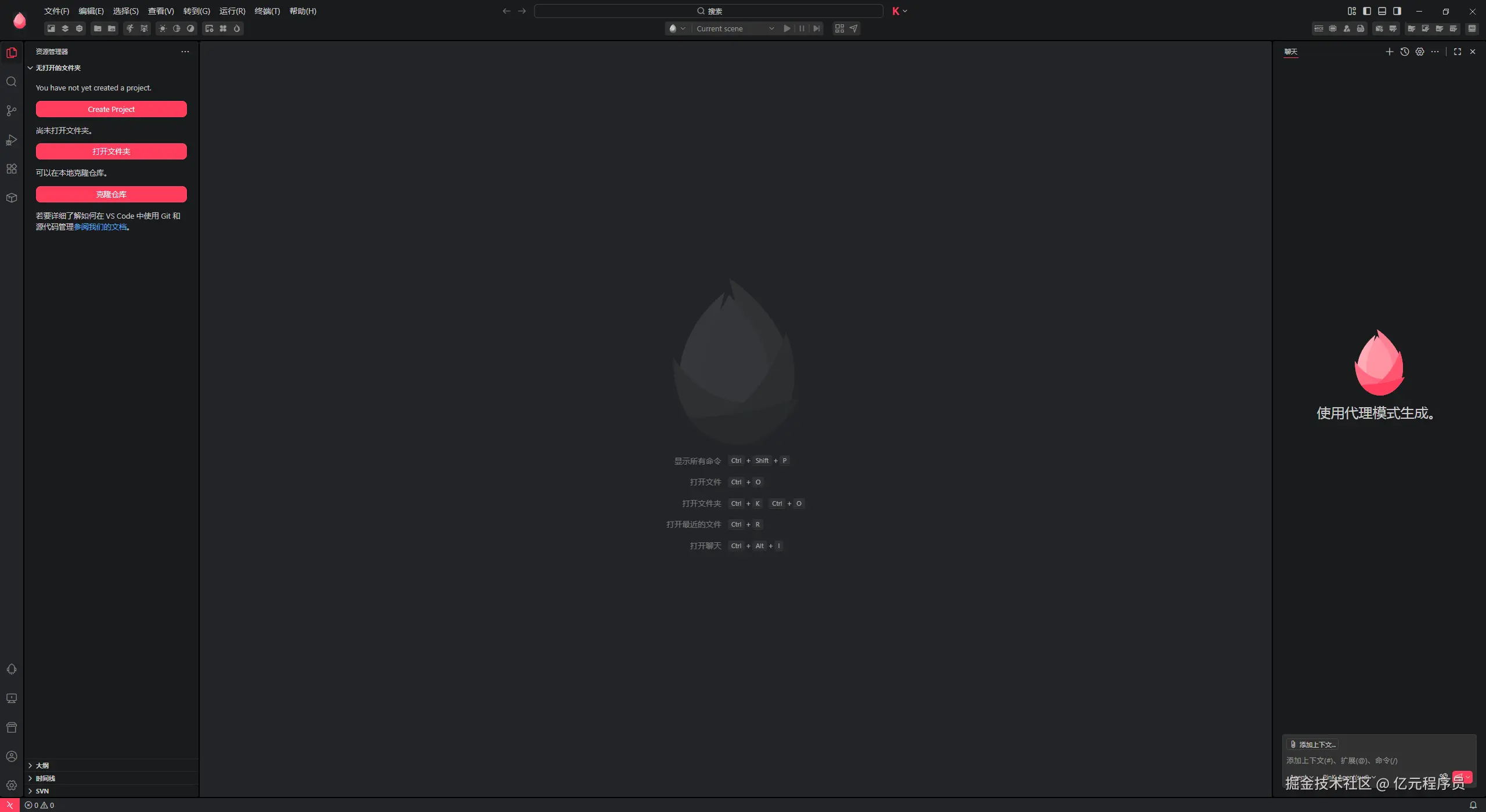 其余剩下的部分就是与VSCode一致的,左侧资源管理器,右侧是我们的AI聊天面板。