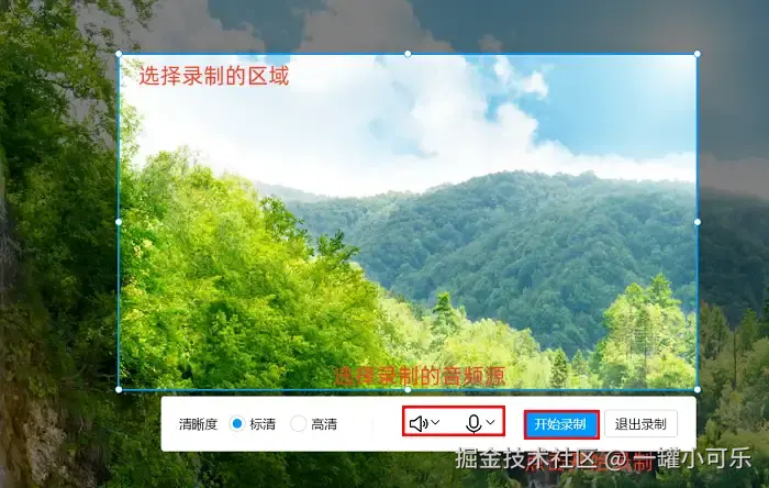 使用这款软件录屏的最大乐趣在于,支持录屏时实时编辑,你可以自由添加文字、随手涂鸦,提升最终导出内容的丰富性。操作方法很简单:选定录制模式,调整好录制区域与音频输入设置,点击 【开始录制】 即可。