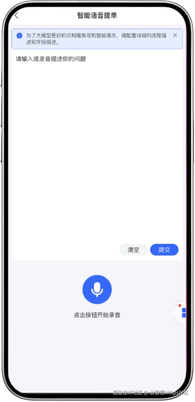 语音提单: 员工通过语音描述问题(如 “服务器宕机”),AI 自动生成工单,简化了繁琐的提单流程,让提单过程变得简单、高效。