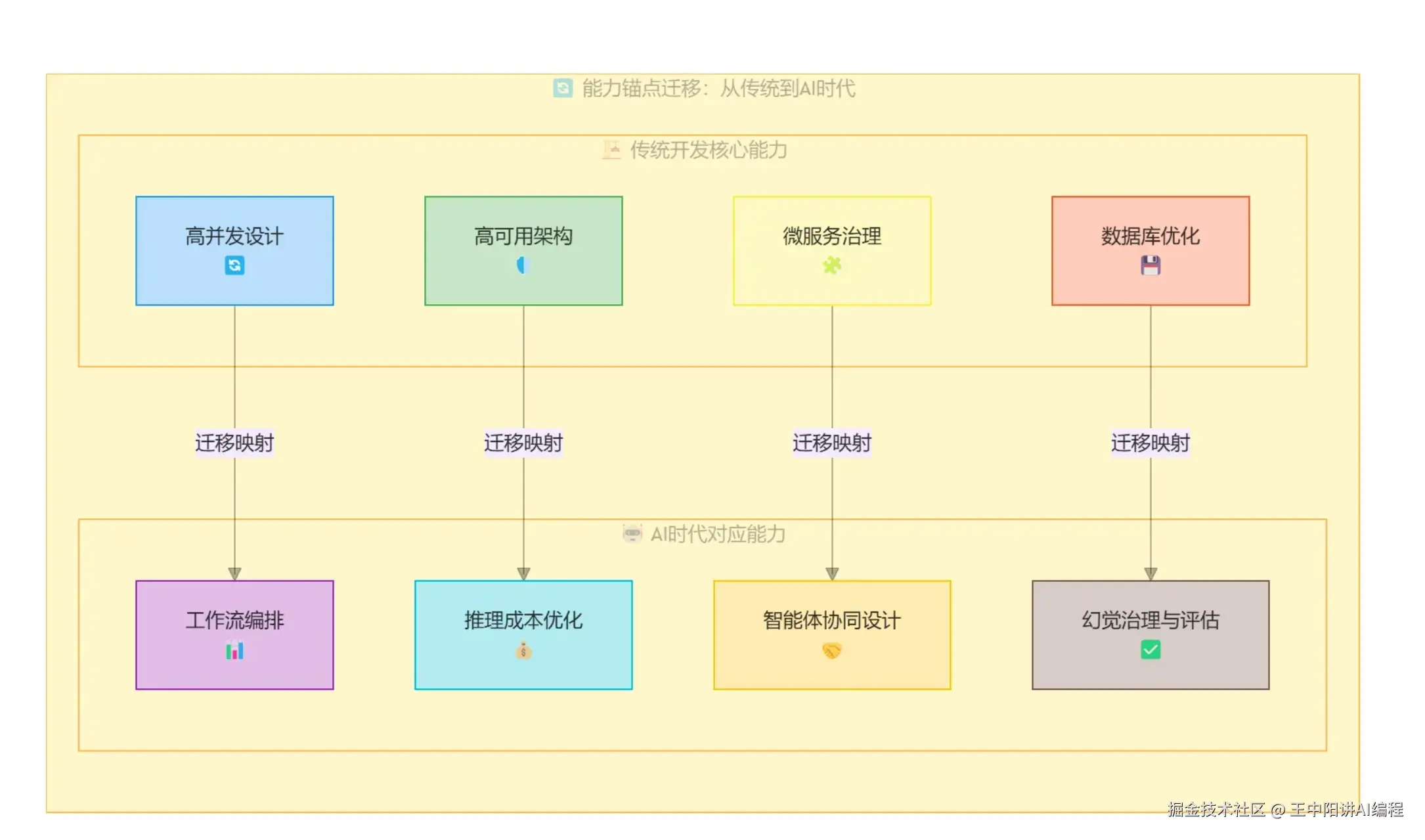- 能力迁移:你擅长的 “高并发”、“高可用”架构思想,在AI时代等价于 “复杂工作流编排与推理成本优化” 。你的工程化优势,将在AI落地阶段全面爆发。