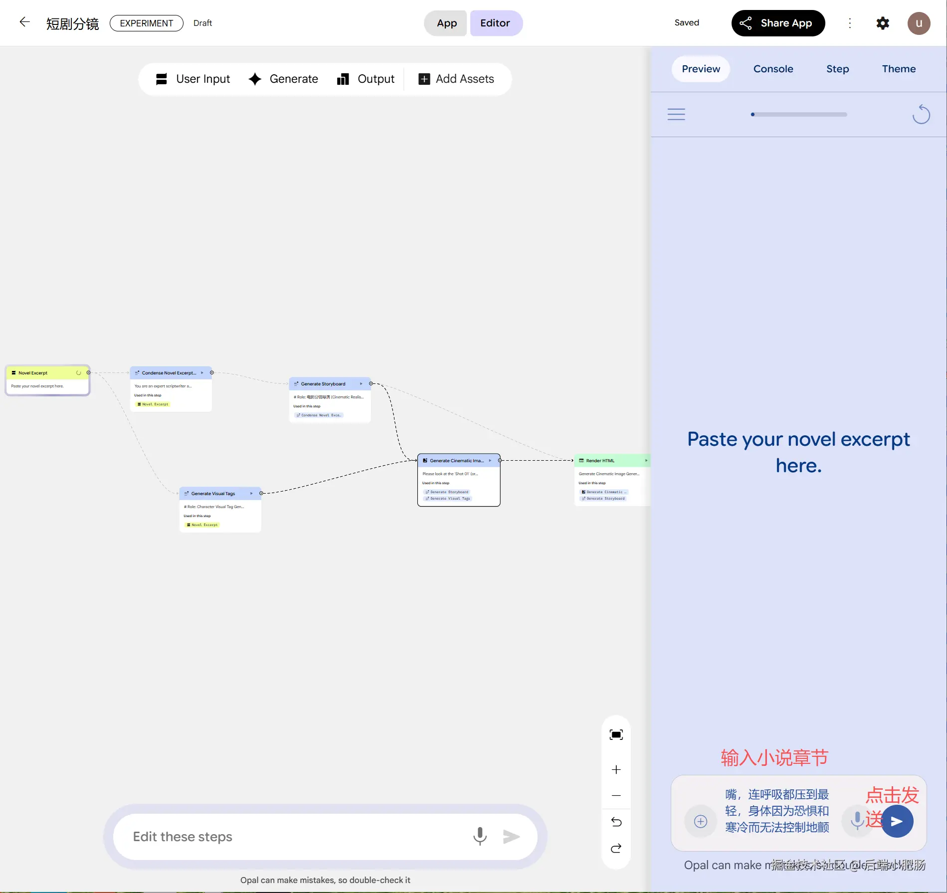 今天,我就用opal,把周六的小说转漫剧分镜图流程重新跑一遍,看看它到底有多强!文章结尾送 工作流 还送原件哦~