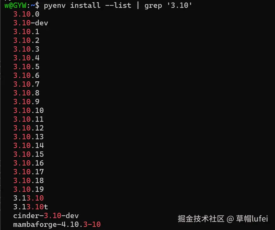 pyenv install --list | grep "3.10"