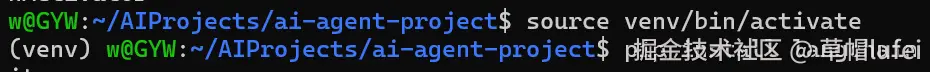 激活后,终端前缀会显示(venv),表示已进入专属环境,如下效果