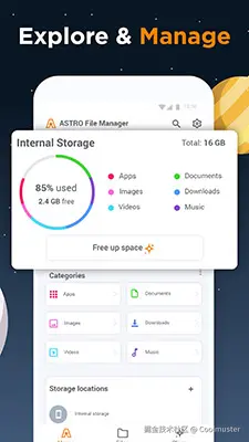 ASTRO 文件管理器是一款适用于Android手机的免费存储空间分析、整理和清理工具。它在 Google Play 商店中评价很高。它提供了一种在Android上轻松整理文件的解决方案。您可以轻松导航到文件夹,并自由地移动、复制、共享和重命名文件。对于存储空间清理,它会为您提供删除占用存储空间的文件夹的建议。