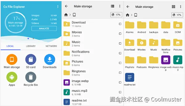 Cx File Explorer界面简洁直观,是一款易于使用的手机存储管理器,可用于整理设备上的文件和文件夹。使用此应用,您可以快速访问和管理设备、电脑甚至云存储上的文件。