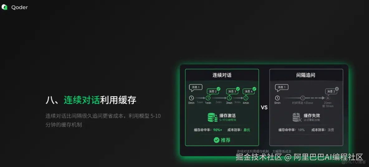 所以,Qoder 做了很多技术策略去优化缓存命中率。而大家在使用时,如果也能用一些能命中缓存的方式,也会非常节省成本。