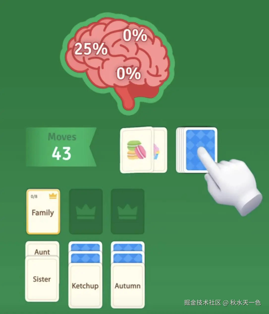 1、简单的玩法展示,偶尔换换卡面和UI背景,上半部分偶尔点缀智商测试的挑逗图案。