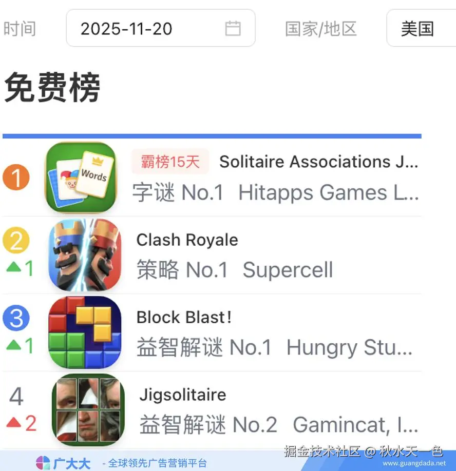 近日益智手游黑马【Solitaire Associations Journey】可是狠狠出了把风头,登顶美国AppStore免费榜不说,还力压【Disney Solitaire】【Block Blast!】【Jigsolitaire】等“老牌顶流”连续霸榜15天。直到字节跳动大手笔的死神IP新作【BLEACH Soul Resonance】空降,才勉强中断【Solitaire Associations Journey】的霸榜之路。