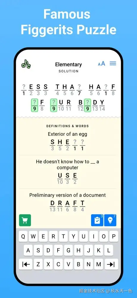 作为偏爱字谜+传统玩法微创新的新派玩家,早在对接龙玩法进行改造前,Hitapps Games就已推出“填空+变形”机制的创新字谜游戏【Figgerits】,早早坚定了未来的字谜改造+的爆款公式。