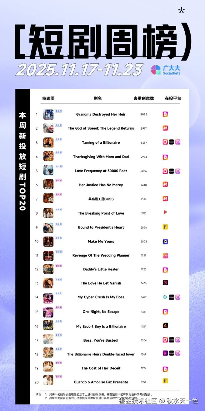 以上便是本次周榜的所有内容,当然榜单中还有不少值得关注的其他热门新剧,欢迎感兴趣的朋友使用广大大进行查看。