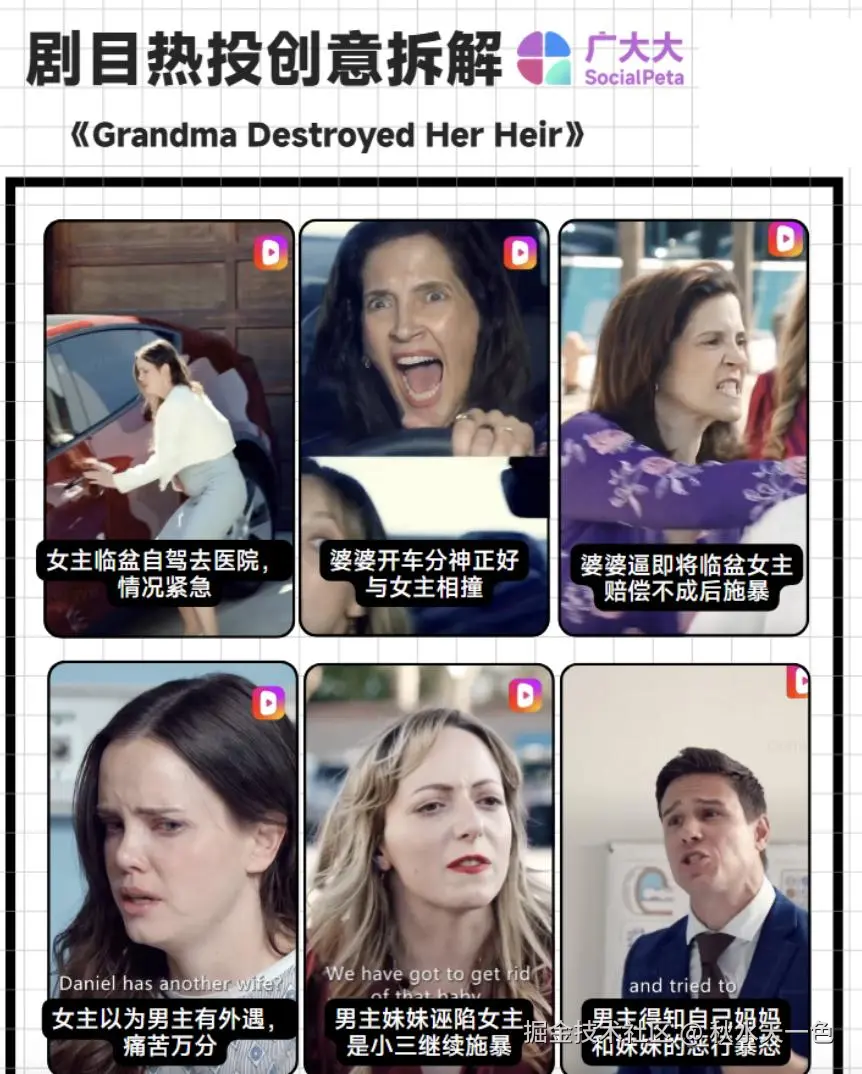 咱们来拆解下这段素材,看看女主的婆婆到底能气人到什么程度:开头就是女主即将临盆,丈夫偏偏不在身边,只能自己开车去医院,情况急得不行,真让人替她捏把汗;结果中间明明是婆婆自己开车分神,反倒倒打一耙逼女主赔偿,没得逞就直接动手施暴,看得人真想冲进屏幕扇她两巴掌;到最后,女主的孩子就这么被霍霍没了,男主这才姗姗来迟,跟自己妈和妹妹断绝关系 —— 真想问问他:早干嘛去了?你老婆被人欺负了这么久,你现在才出现。