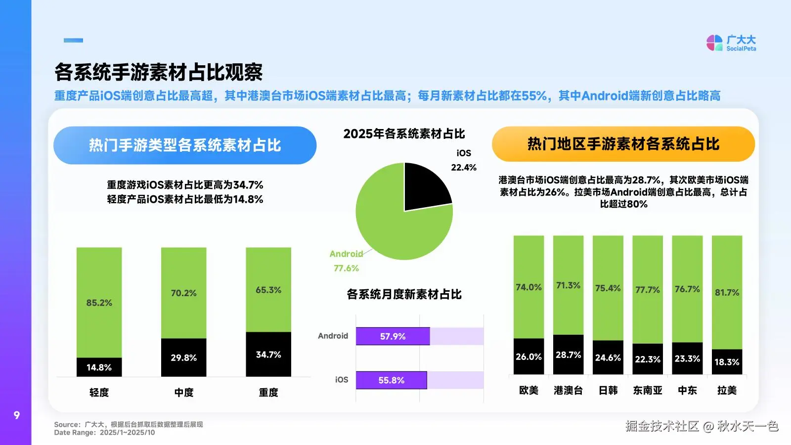 作为手游从业者,你是否正困惑于“素材投多少才够?”“不同地区该侧重什么策略?”“iOS和Android素材该怎么分配?”——别慌!广大大与全球顶级创意智能平台Reforged Labs联合打造的《2025全球手游市场营销洞察&创意拆解报告》,早已给出答案。