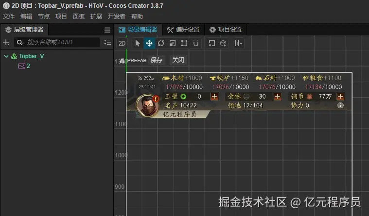 view的setDesignResolutionSize方法进行设置。 - UI配置:通过配置界面的名字、竖屏的界面、横屏的界面、层级和管理组件。