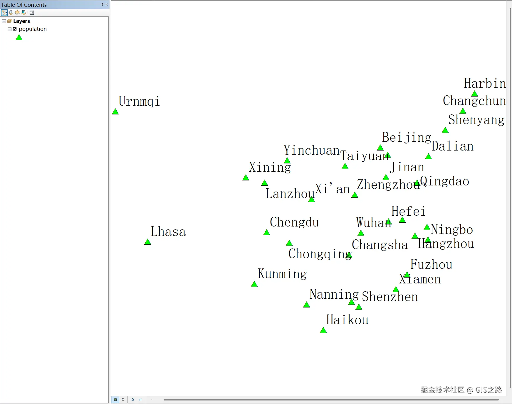 使用ArcMap打开显示结果如下: