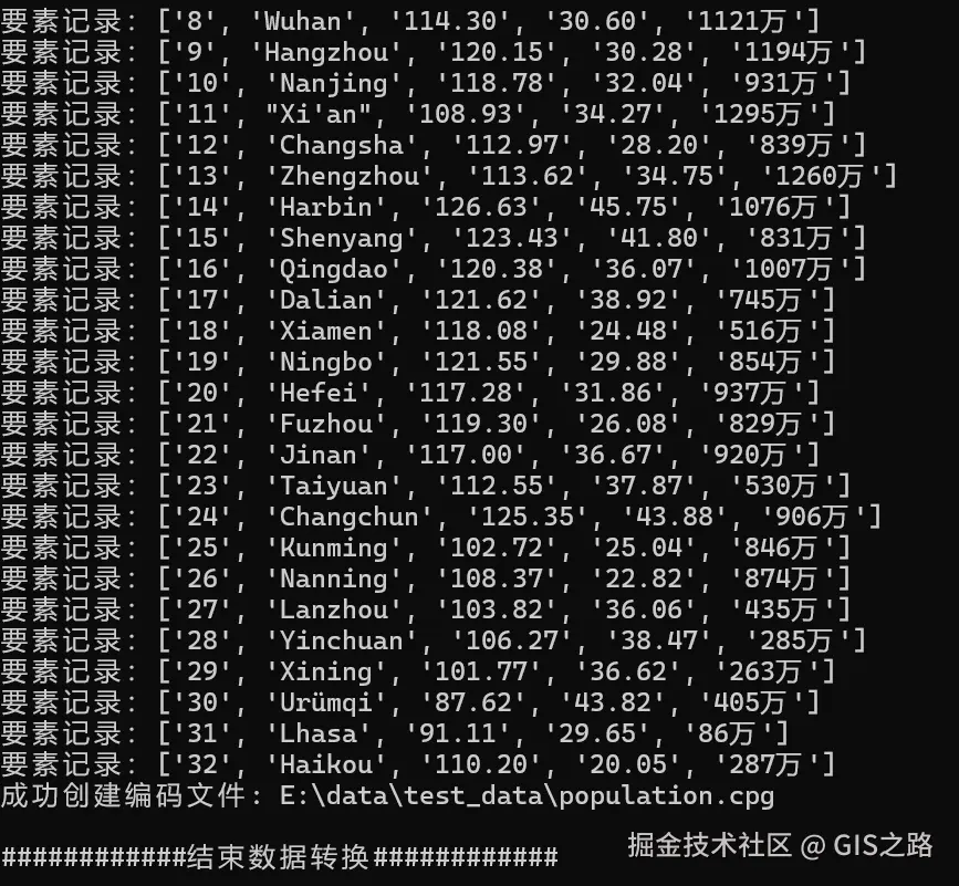 程序成功转换数据显示如下: