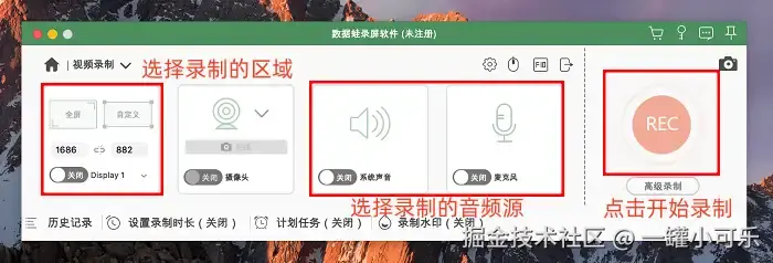 除了上述优势,数据蛙录屏软件的操作步骤也十分简易,详细说明如下: