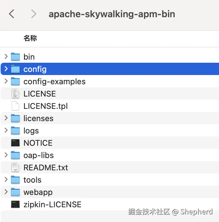 config: 存放配置文件,这里是我们需要关注的,有OAP服务的配置文件