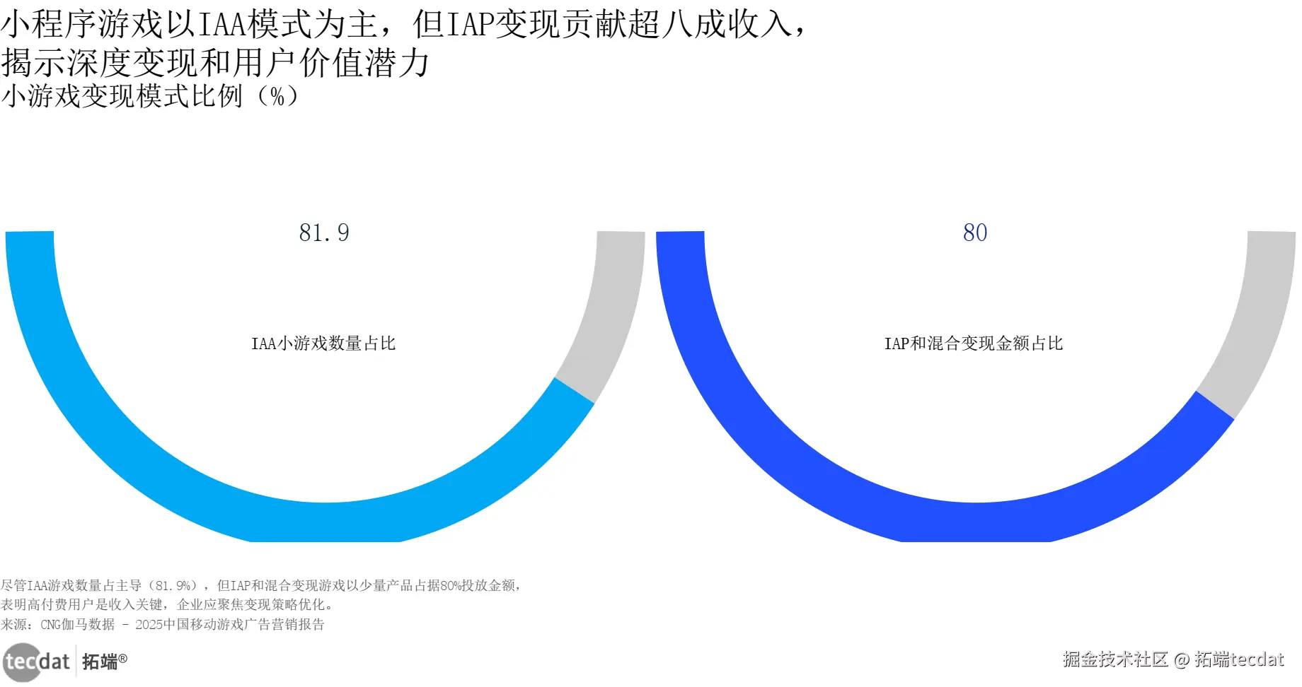 3秒解读:IAA小游戏数量占比81.9%,但IAP和混合变现模式贡献80%收入,高付费用户是变现核心。