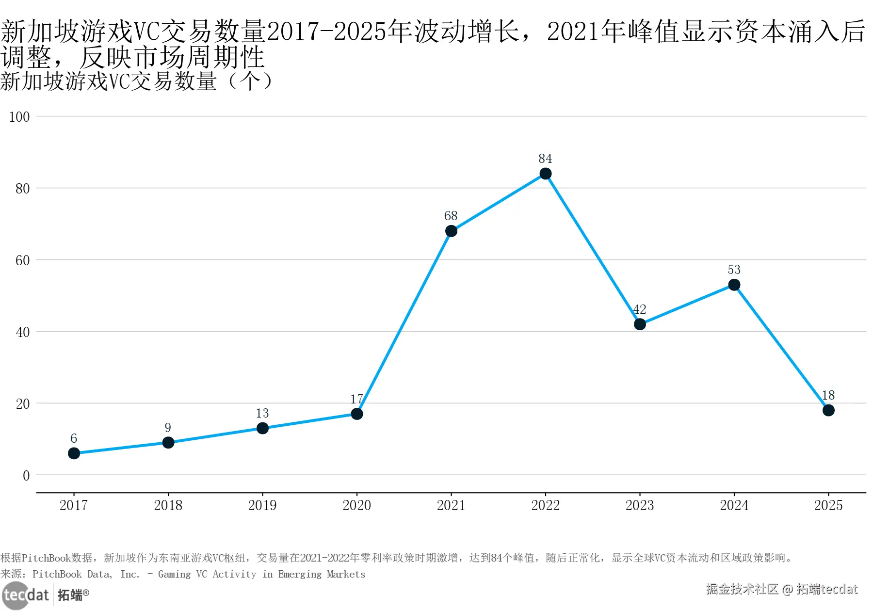 新加坡游戏VC交易数量2017-2025年趋势折线图表1数据EXCEL及图表PDF模板已分享到会员群