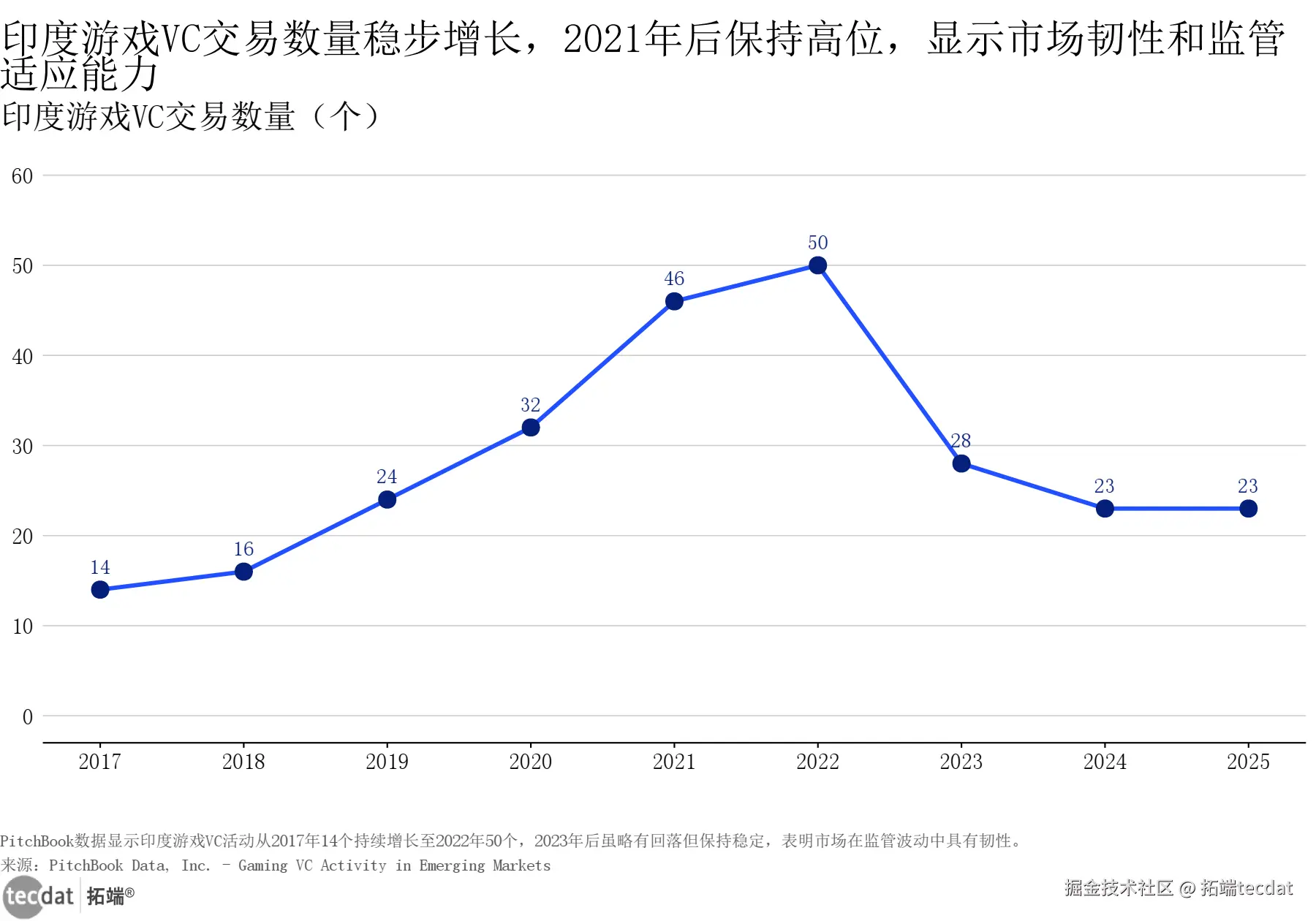 印度游戏VC交易数量2017-2025年趋势折线图表2数据EXCEL及图表PDF模板已分享到会员群