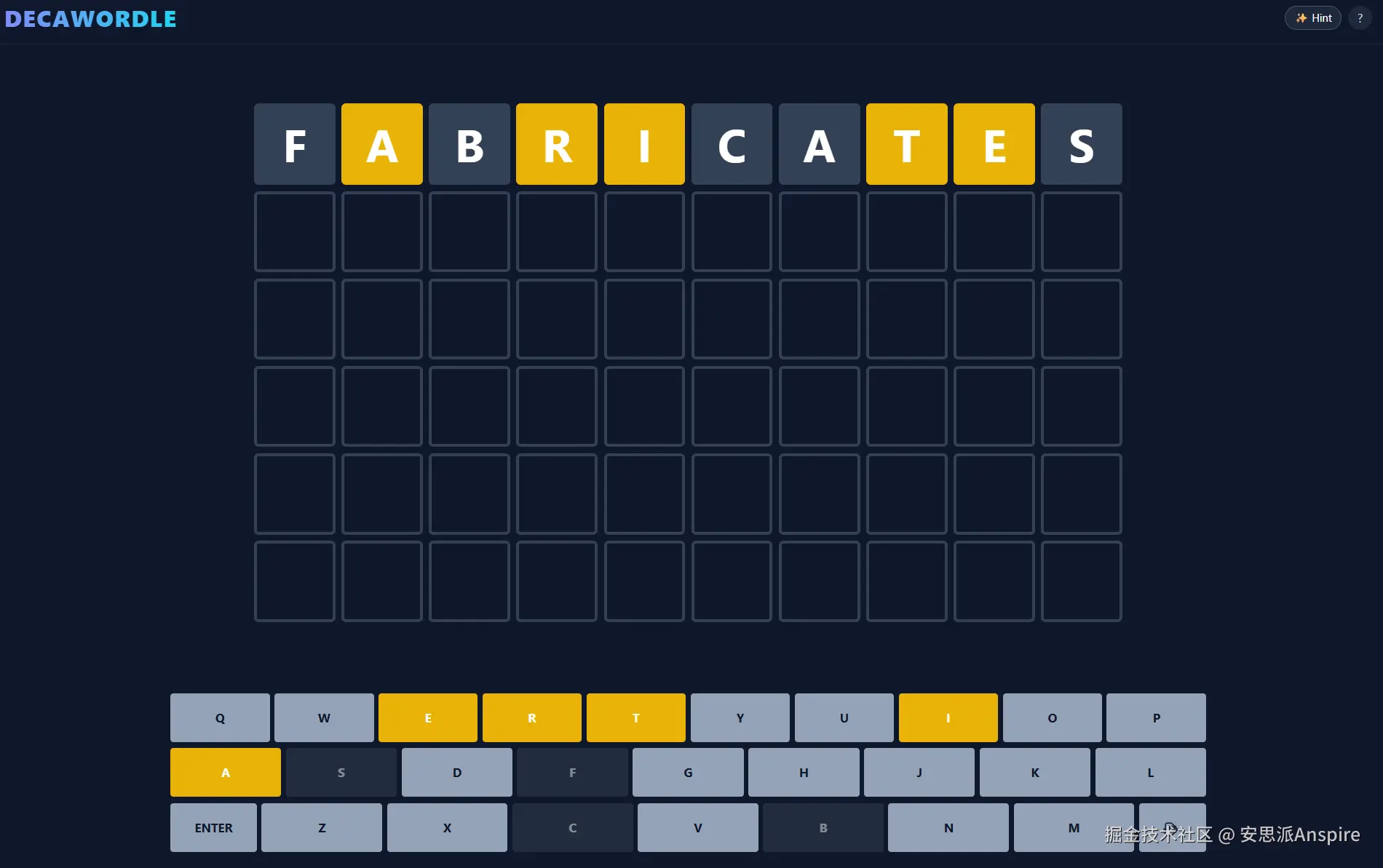 为了好玩,我仅用两个小提示就成功构建了一个完整的Wordle克隆版(只是使用10字母单词):