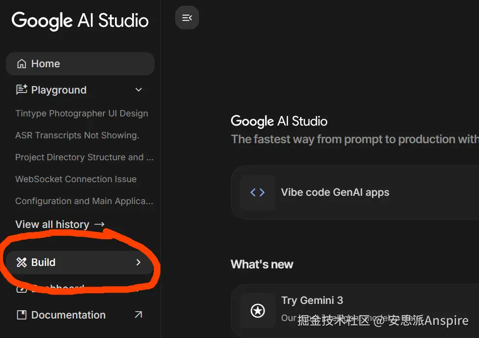 访问aistudio.google.com/并注册一个免费账户,然后点击侧边栏中的“构建”开始使用。