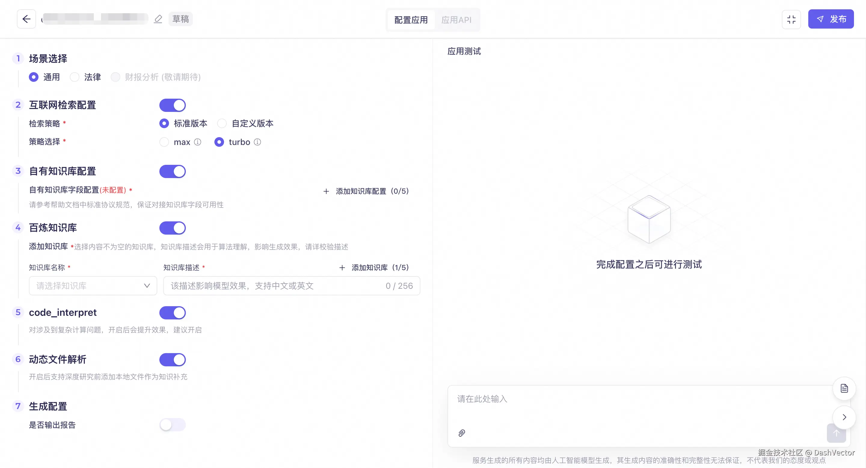根据实际需求选择使用场景,当前可选通用场景、法律场景。