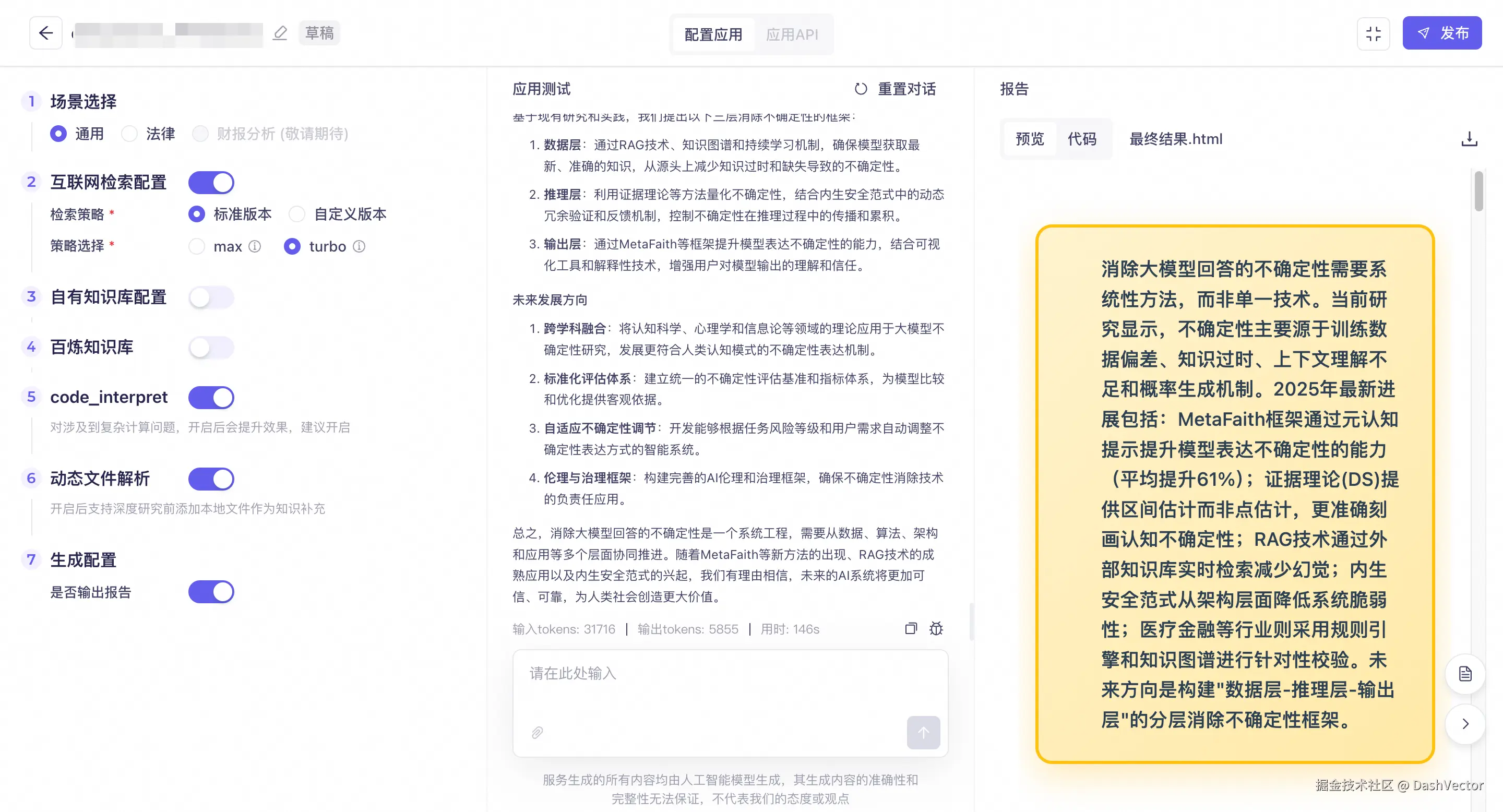 开启输出报告后,对话最终会生成报告文件。关闭则不生成报告。