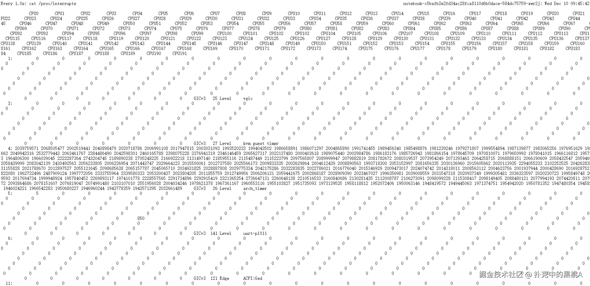因此,在性能优化时,理解并分析这张表非常关键。 它能帮助你判断是否存在“中断集中于少数 CPU 核”的情况,为后续的绑核优化提供数据依据。