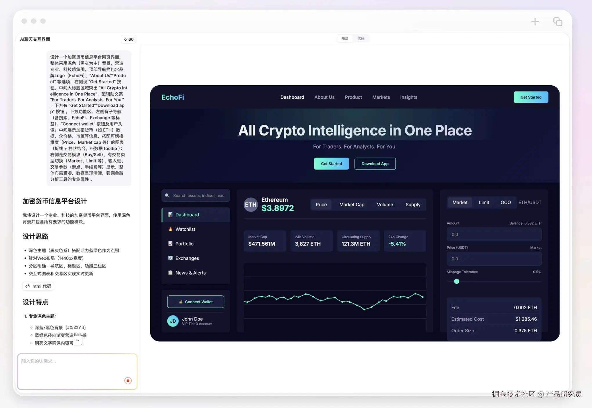 它的设计说明不仅包含UI界面的设计规范,还有页面的布局结构、交互效果等。AI生成结果并不是仅仅局限于UI,也可以说是高保真原型,展现了页面的功能结构与交互逻辑。