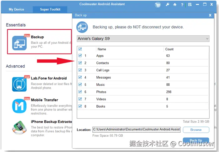 第 1 部分。如何通过Coolmuster Android Assistant将小米数据备份到 PC?[选择性]