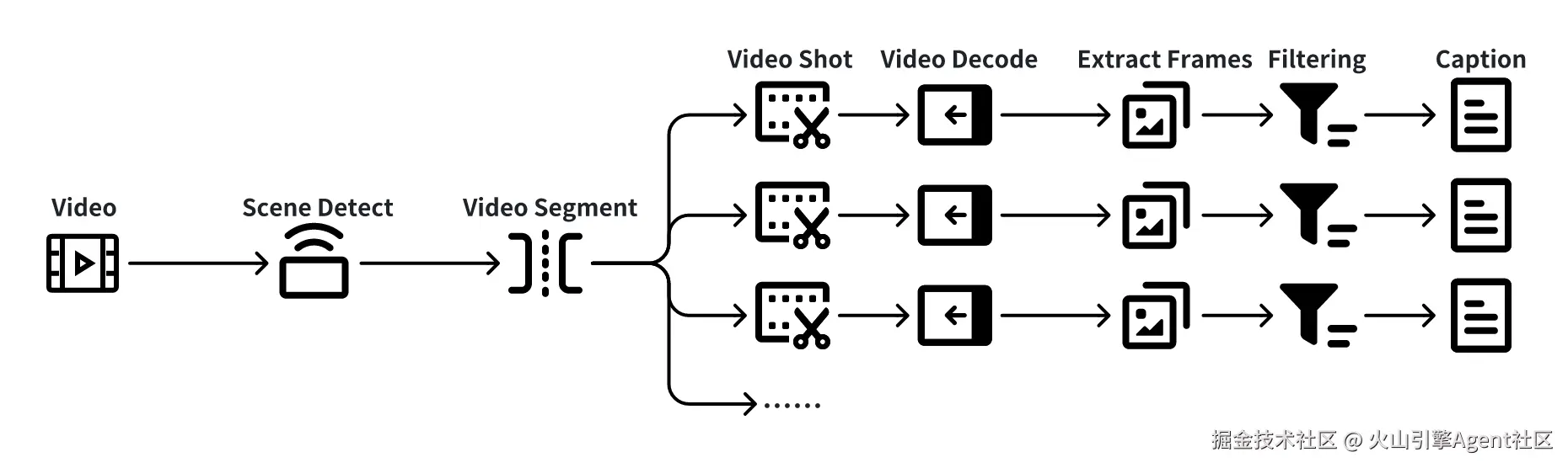 - 链路分散: 分镜、视频解码&抽帧、过滤、caption生产等步骤往往由不同脚本实现,难以统一管理