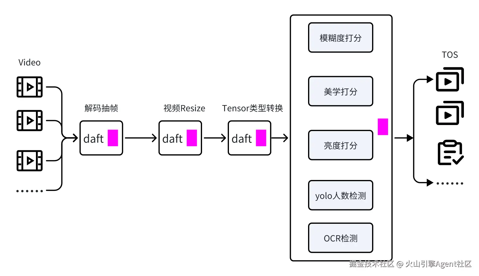 - 随后,借助 Daft 的分布式任务调度和并发执行能力,实现大规模的并行视频切分操作